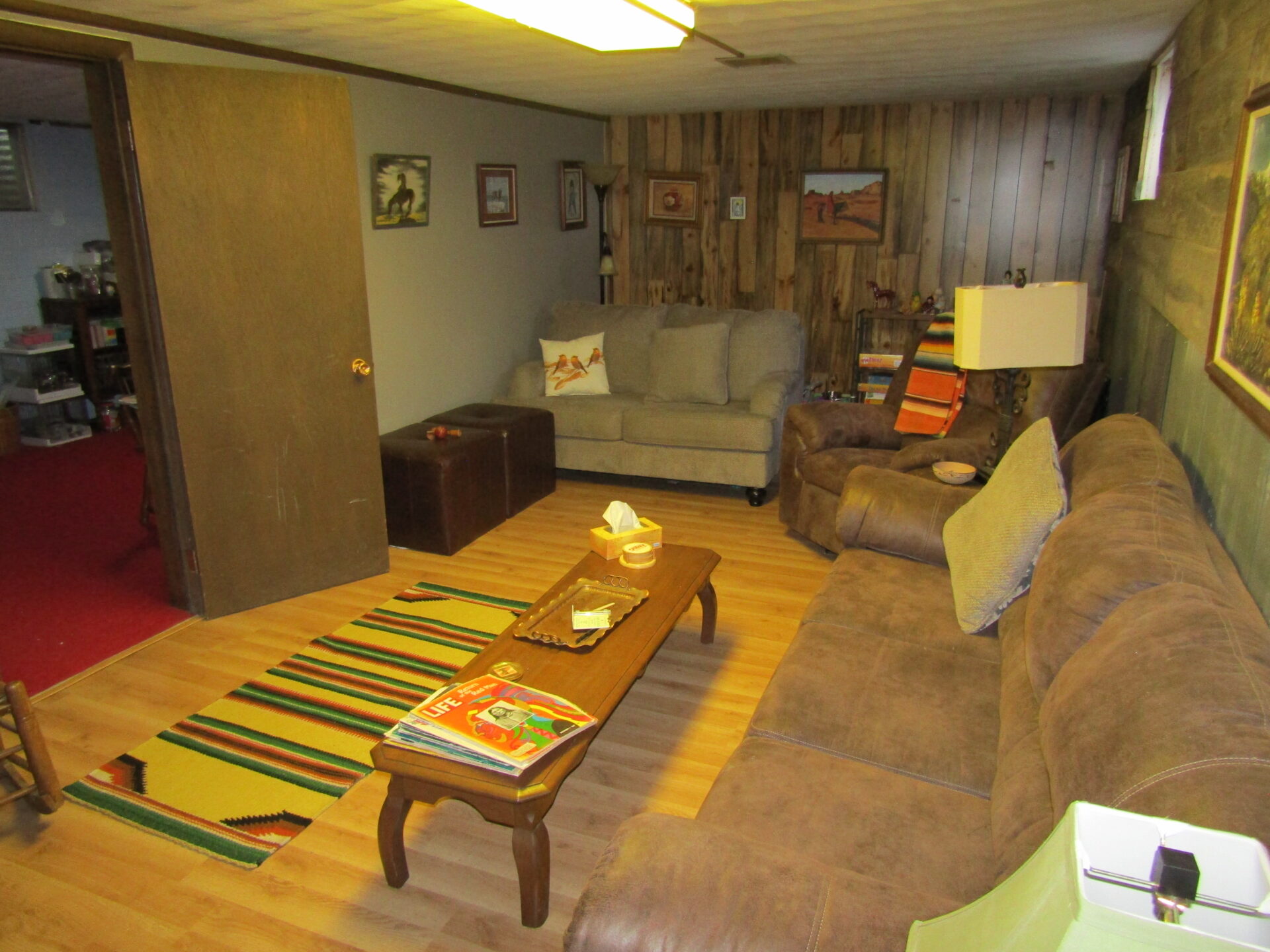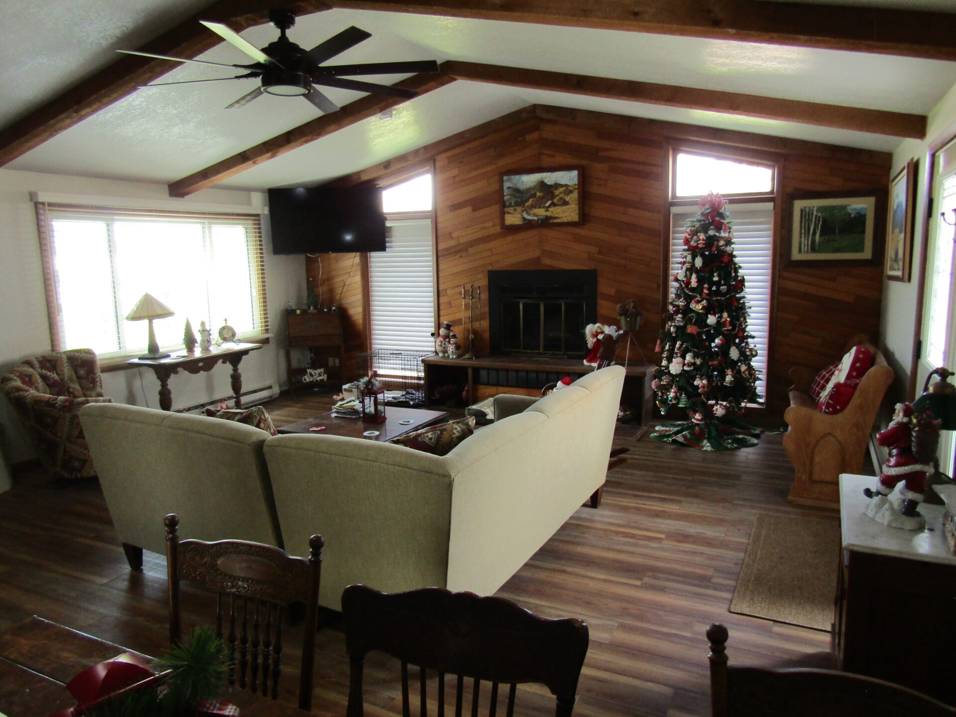 Updated home on large corner lot! Here is a spacious 3-bedroom, 2-bathroom home that has been well maintained with several updates throughout. As one enters the home, they will be greeted with a large family room with high ceilings, nice fireplace, and new floors that run throughout the home. Down the hall is a main bathroom and 3 bedrooms with the largest bedroom having the convenience of a master bathroom. The kitchen offers plenty of cabinet and counter space as well as a pantry. Just off the kitchen is a large patio door giving great access and view to the backyard. In the backyard, one will find a large concrete patio that is great for entertaining or being outside in any weather. The basement has three large rooms that could be used as family rooms or non-conforming bedrooms and also has a space for an office.