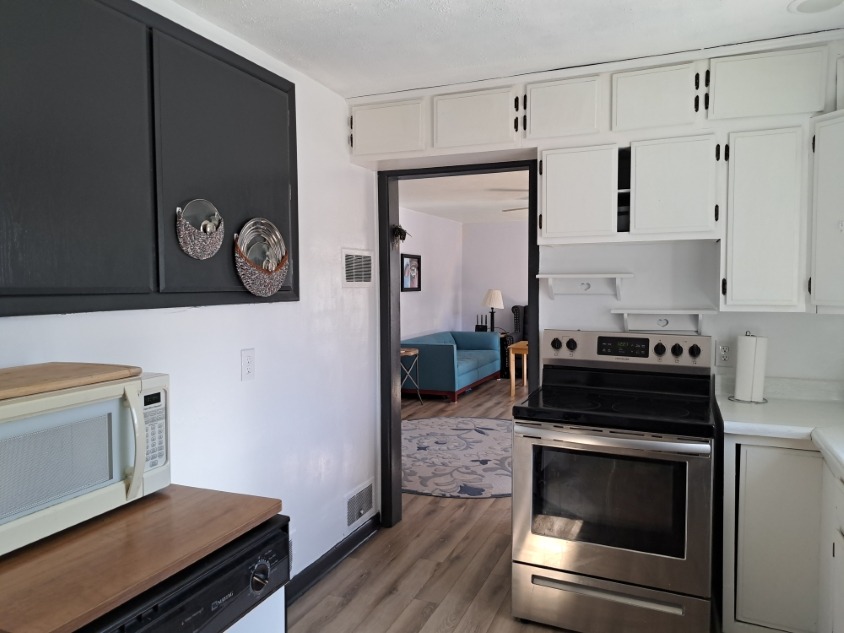 Excellent location nearby Chadron State College, City Park, Chadron Schools, and Swimming Pool. This efficient home has several recent updates w/two bedrooms and a bath on each level. New flooring on the main level. Sizeable living room and kitchen complete with appliances. (Refrigerator, Range/Oven, Dishwasher, Clothes Washer and Dryer). The attached garage w/breezeway has easy access to the home and a back yard patio and fenced yard. New Gas Furnace w/Central Air. Corning lot. Off street parking.
