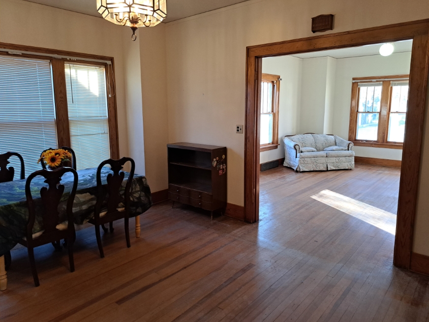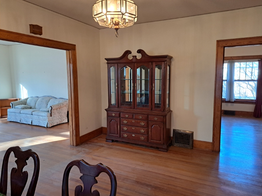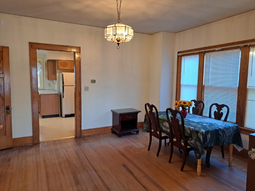 Classic home in a great location. The entry opens directly to a spacious living room with original solid wood flooring that is a common thread throughout the home. The main floor features two bedrooms, a full bath, built in storage in the hallway and original trim/millwork. There is a large formal dining room and an updated kitchen with a breakfast nook for informal dining. Full basement includes two additional bedrooms (non-conforming), another bath, two storage rooms, and a large open laundry area. There is a secure/weatherproof set of steps conveniently leading to the back yard. Updated furnace with central air. Detached single car garage along with off street parking.